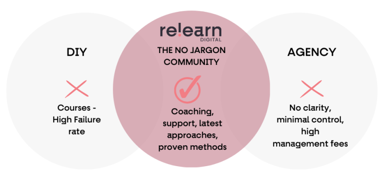 Relearn digital is a simple No Jargon way to become a smarter perfromance digital marketer without having to trawl through hours of Youtube videos, reels and generic blog posts trying to figure out what to do (and tearing your hair out on the way).